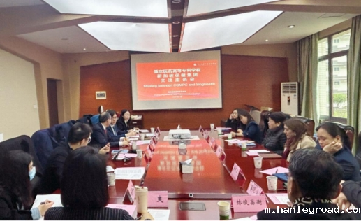 1月23日,在重庆市卫生健康委国际处处长杨彬的陪同下,新加坡保健集团(下称新保集团)国际合作部总监Vijaya Rao一行七人来校参访。杨彬主持召开了座谈会,学校校长刘永生出席并致辞,副校长兰作平、国合处、护理学院等相关处室和院(部)负责人参加了座谈会。