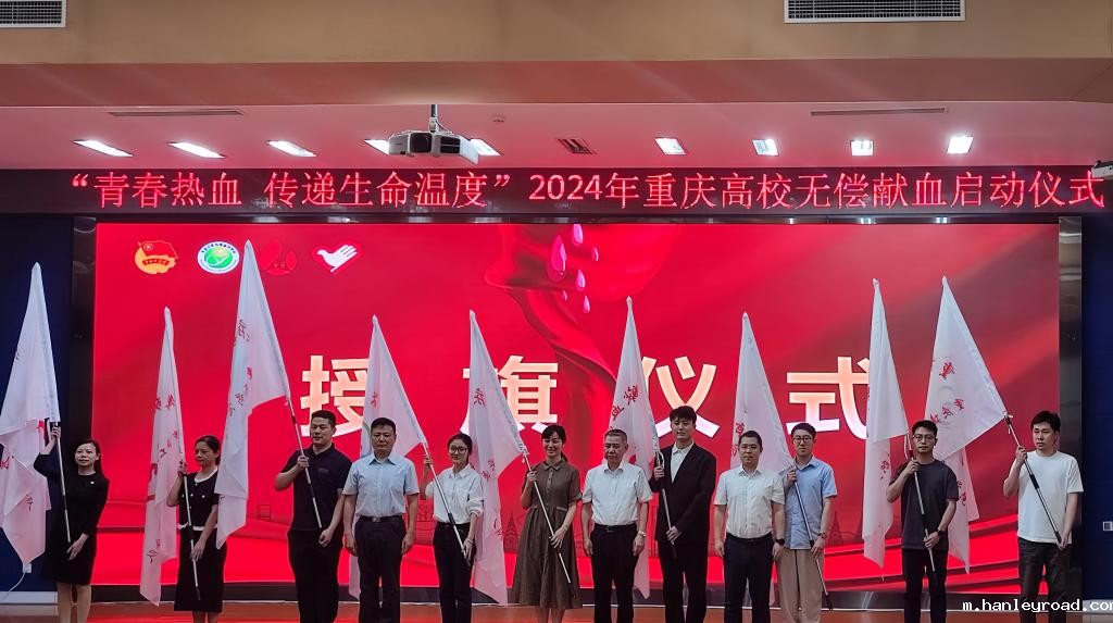 活动现场,学校青年大学生志愿者代表以“以青春之名,赴热血之约”为主题,发出无偿献血志愿服务倡议书。与会领导为9所高校代表授予重庆市无偿献血志愿服务分队旗帜,动员各高校团委要坚持以志愿服务为牵引,继续在引领青年思想进步中发挥先导性、示范性作用,组织发动广大青年大学生率先参与无偿献血,为树立社会新风尚作表率,助力推动《献血法》落地落实。