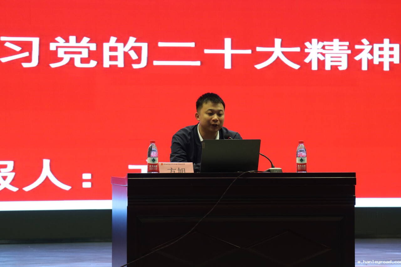 最后,市委党校马克思主义学院副院长方旭教授为与会师生讲授了题为《奋力谱写全面建设社会主义现代化国家新篇章—认真学习党的二十大精神》的专题讲座。方旭对党的二十大报告的解读既有理论高度,又有思想深度,并通过丰富的案例,结合大学生实际,带领同学们领略了党的二十大报告的精神要义,对于同学们下一步原原本本学、融会贯通学、联系实际学具有重要的启迪作用。