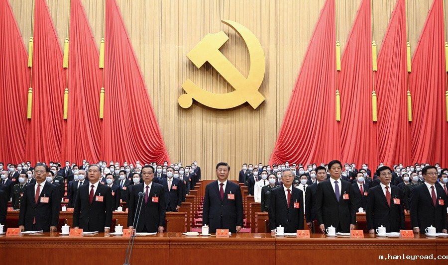 10月16日,中国共产党第二十次全国代表大会在北京人民大会堂开幕。这是习近平、李克强、栗战书、汪洋、王沪宁、赵乐际、韩正、胡锦涛在主席台上。新华社记者 李学仁 摄