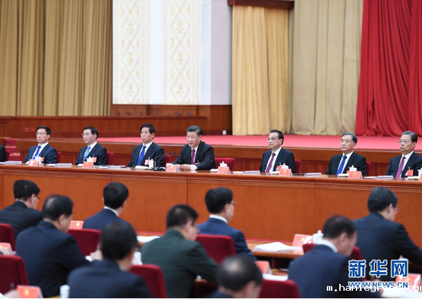 (中国共产党第十九届中央委员会第四次全体会议,于2019年10月28日至31日在北京举行。这是习近平、李克强、栗战书、汪洋、王沪宁、赵乐际、韩正等在主席台上。 新华社记者 申宏 摄)