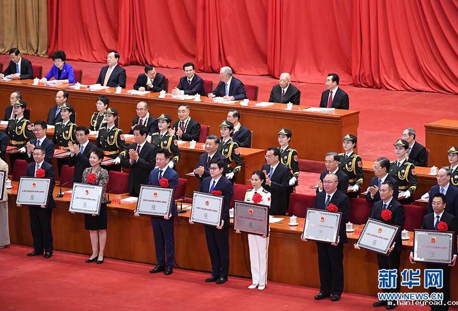 李克强主持大会,栗战书宣读主席令,王沪宁宣读表彰决定,汪洋、赵乐际、韩正、王岐山出席。