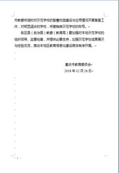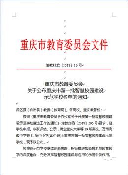 近日,据《重庆市教育委员会关于公布重庆市第一批智慧校园建设示范学校名单的通知》,我校成功申报重庆市第一批智慧校园建设示范学校。