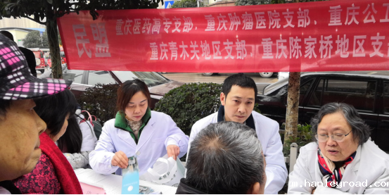 1月12日上午九点,民盟新利平台首页登录入口支部在沙区盟区委、学校组宣部的支持和各支部委员的组织下,携手重庆肿瘤医院支部、重庆公卫中心支部、重庆青木关支部、重庆陈家桥支部在九龙坡区金凤镇开展“服务百姓健康行动”。